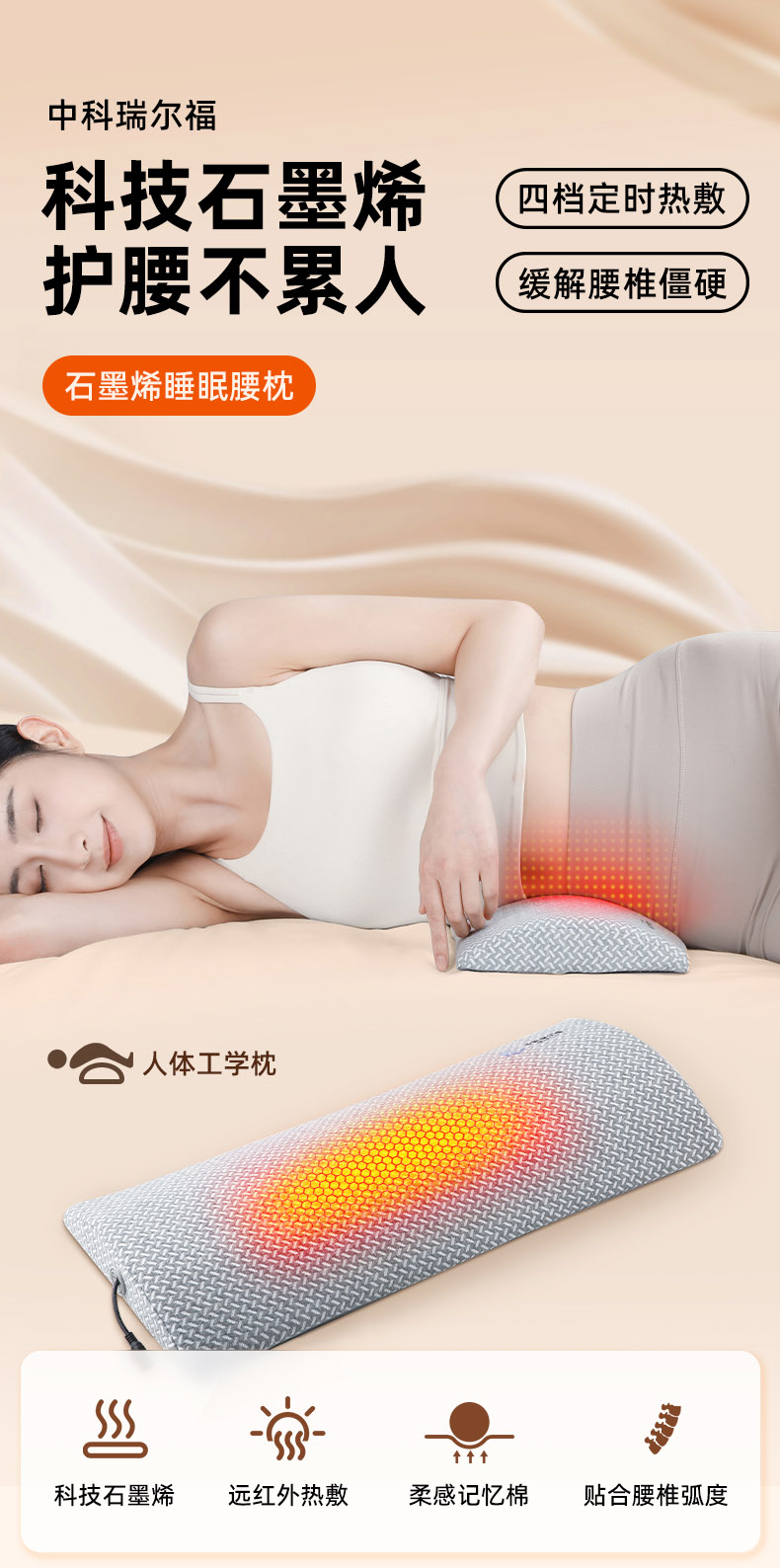 有助于缓解腰间盘突出、腰部长期劳累、久坐导致腰部不适疼痛及女性经期宫寒引起的身体不适,通过点阵石墨烯蓄热释放远红外光波,促进血液循环。
